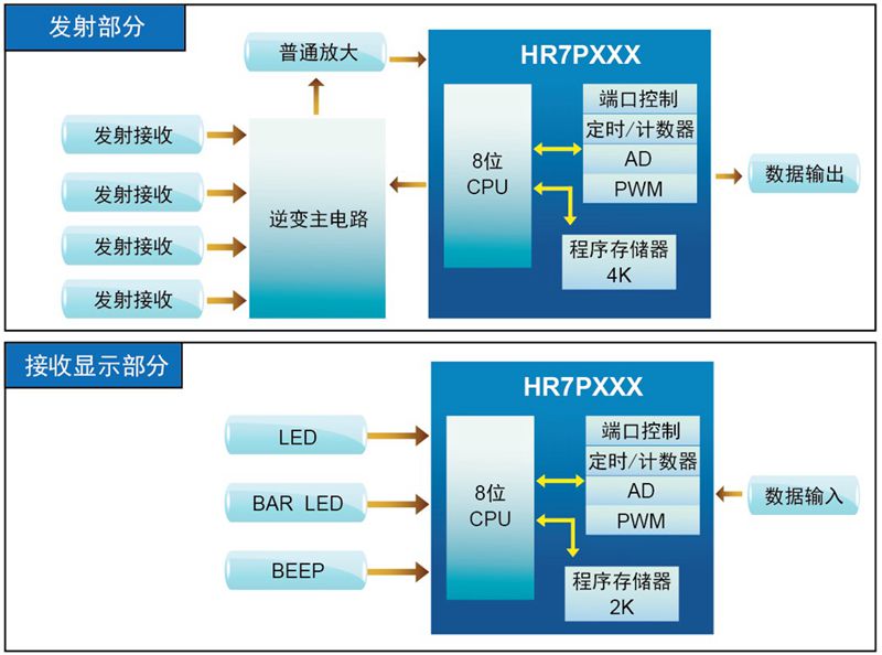②采用收发一体的超声波探头,发射40KHZ超声波。