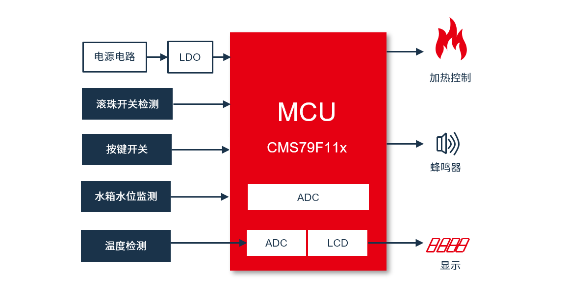 中微半导体公司推出高性价比的电熨斗产品解决方案,方案具有内置LCD显示驱动电路,内置高精度AD测温模块,内置基准电压源,有效简化外围电路设计,提供模板程序和模块化代码等多种开发方式,确保客户快速开发和导入量产。